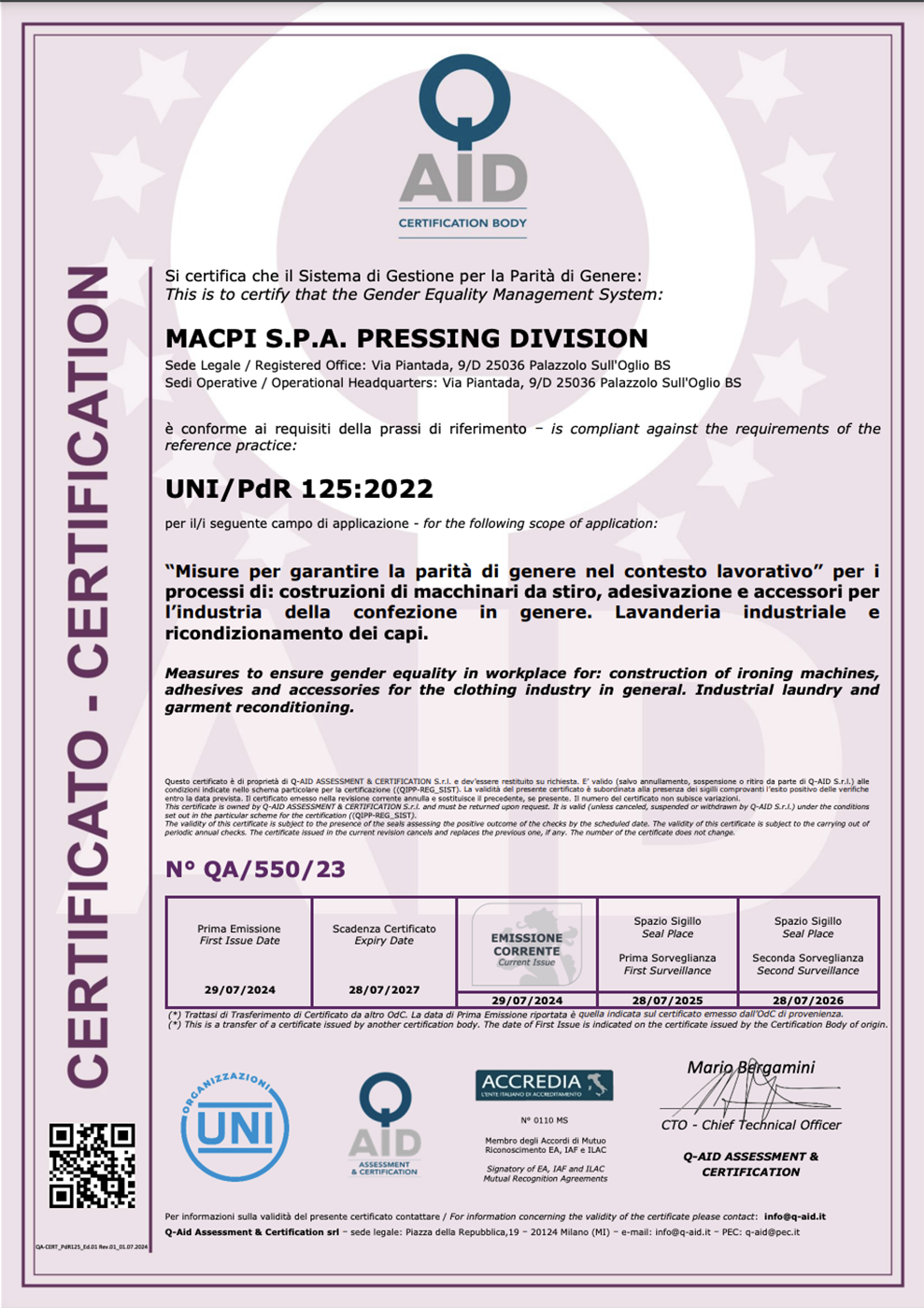 Macpi controls and manages every step linked to the production process to guarantee a top-quality machineries Made in Italy to the end customer
