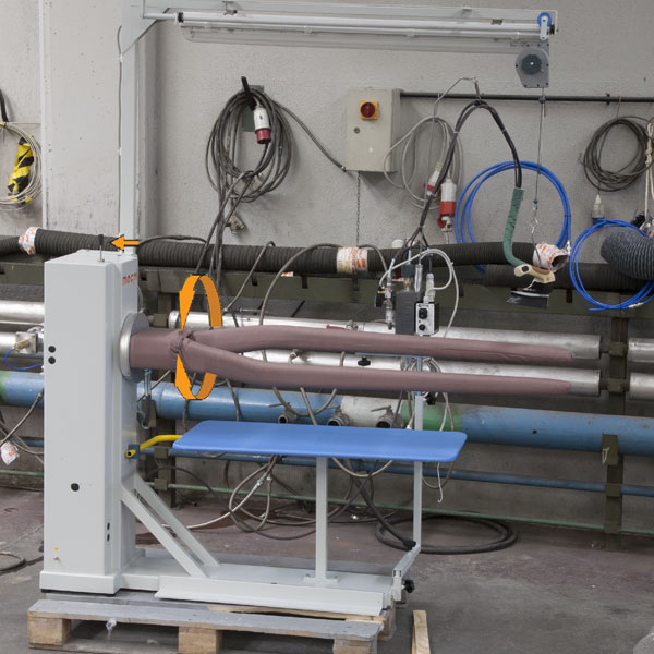 Revolving ironing table with two rotating bucks that allow the opening of inside and outside seams by a single positioning of the garment. Without iron.