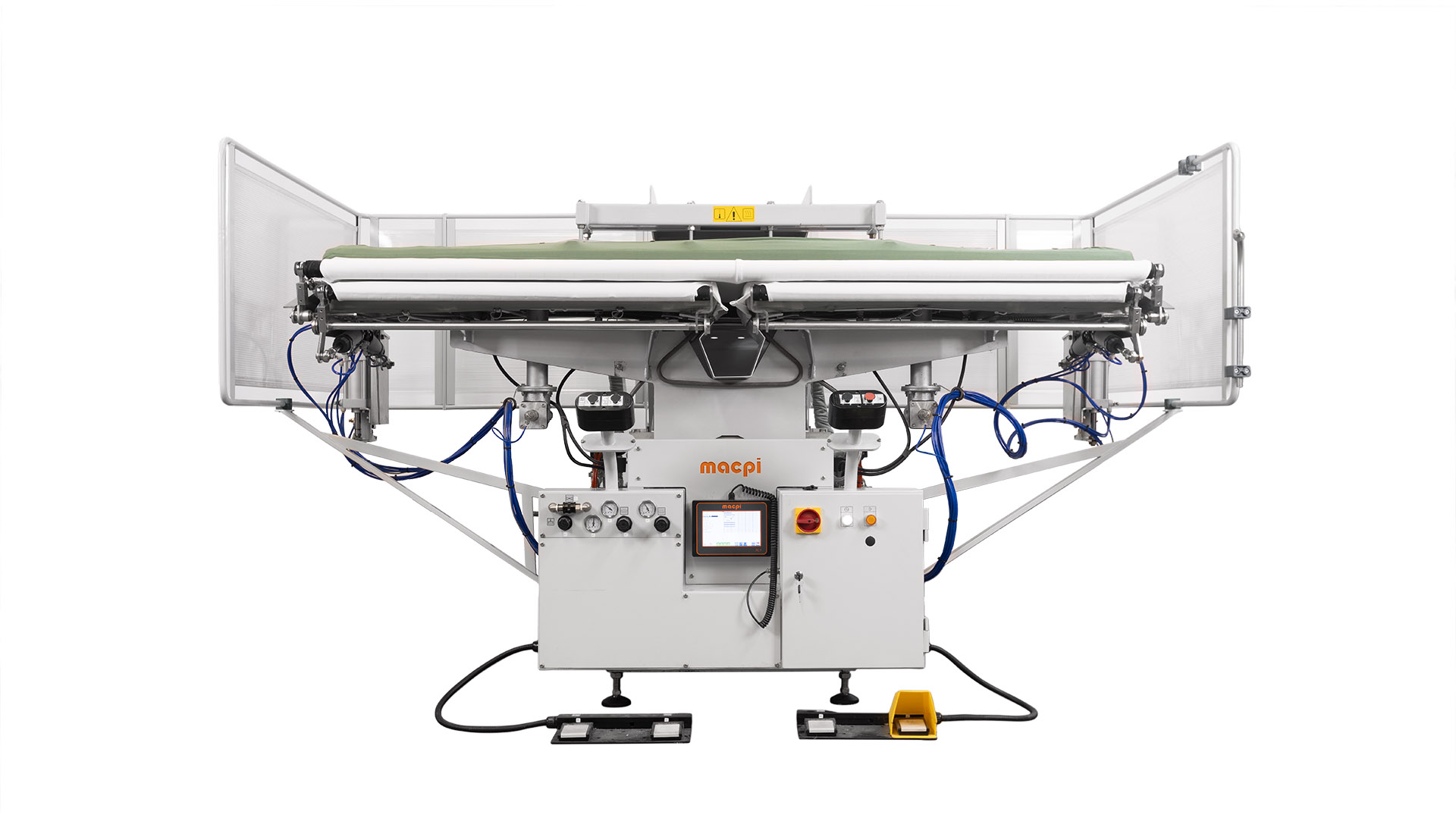* pivot equipado con sistema tensable neumaticamente con ajuste de la tensión y sistema de recuperación tejido.